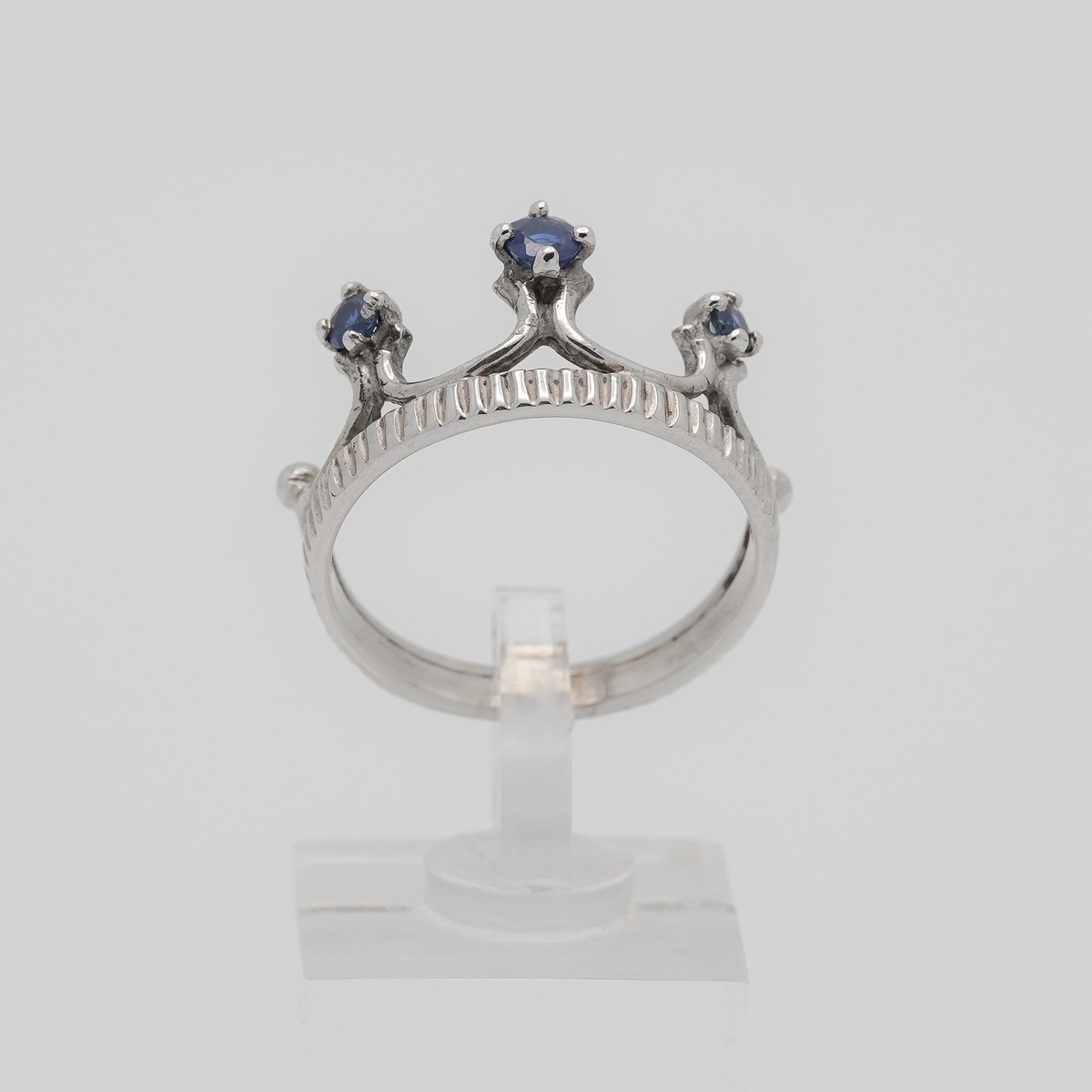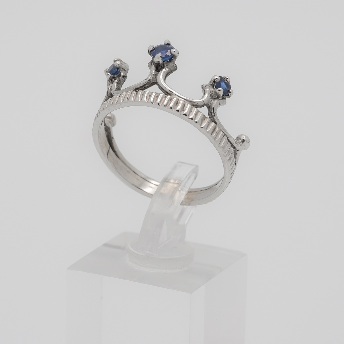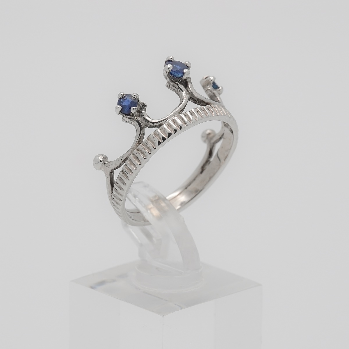 Bague argent 925 millièmes en forme de couronne avec 3 saphirs serti 4 griffes.