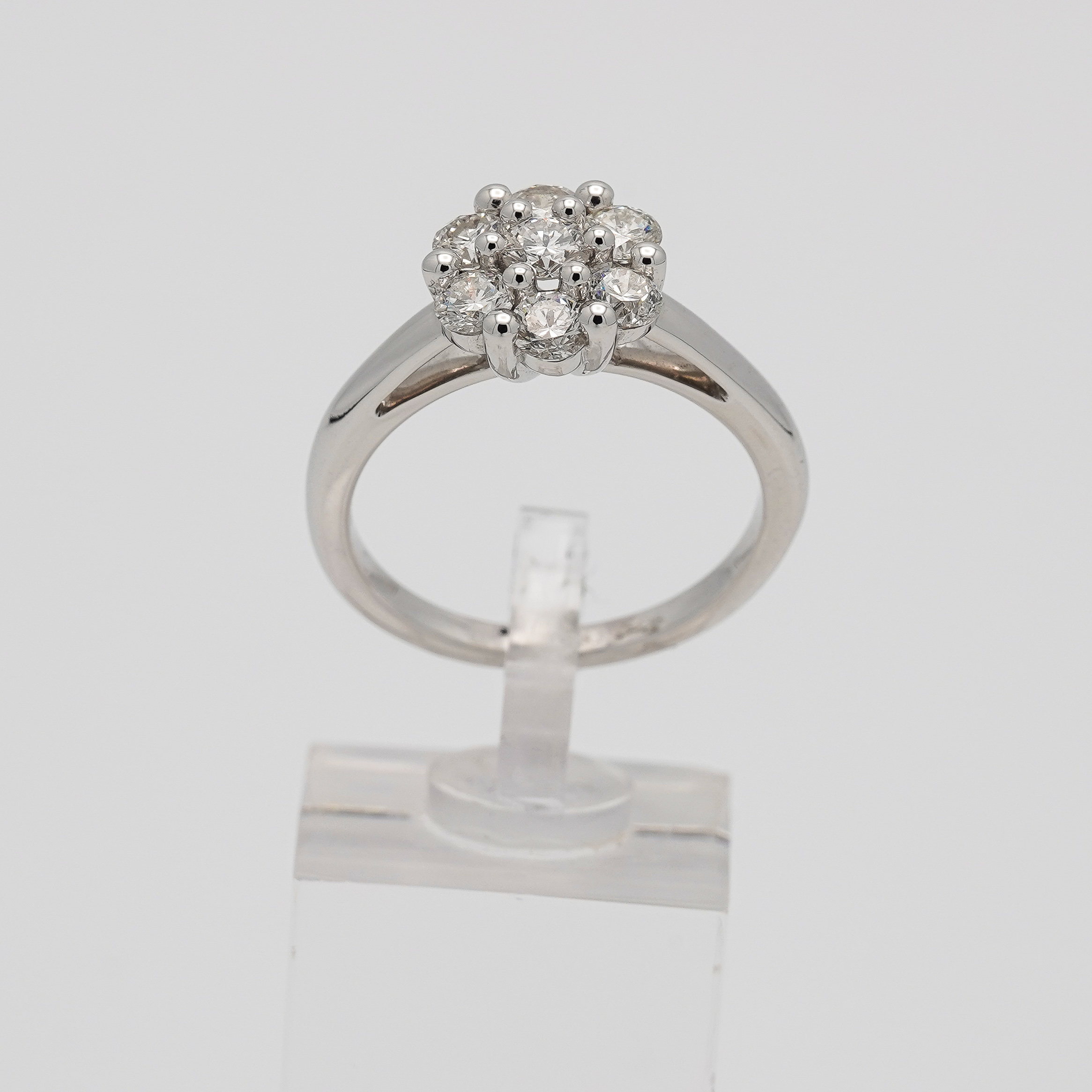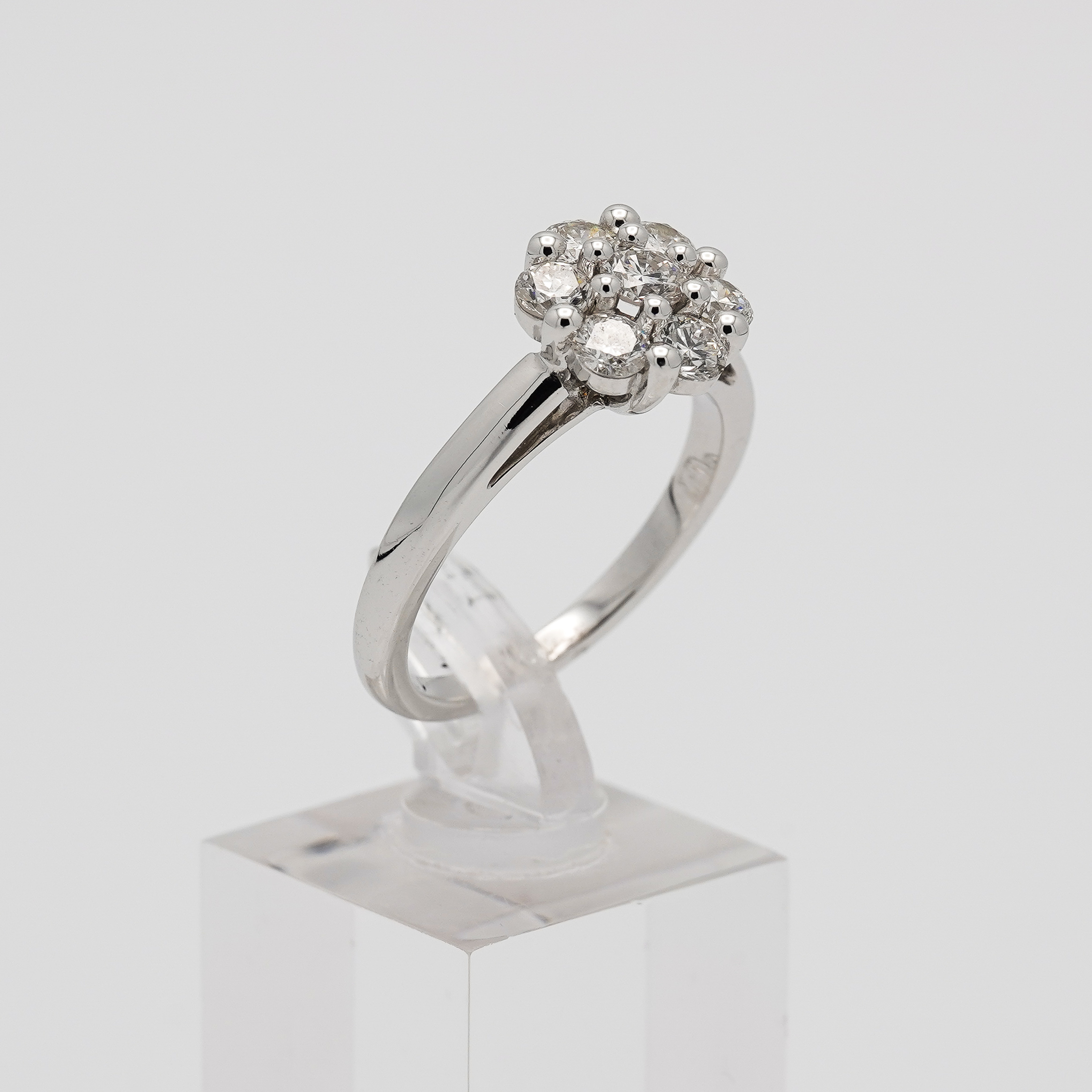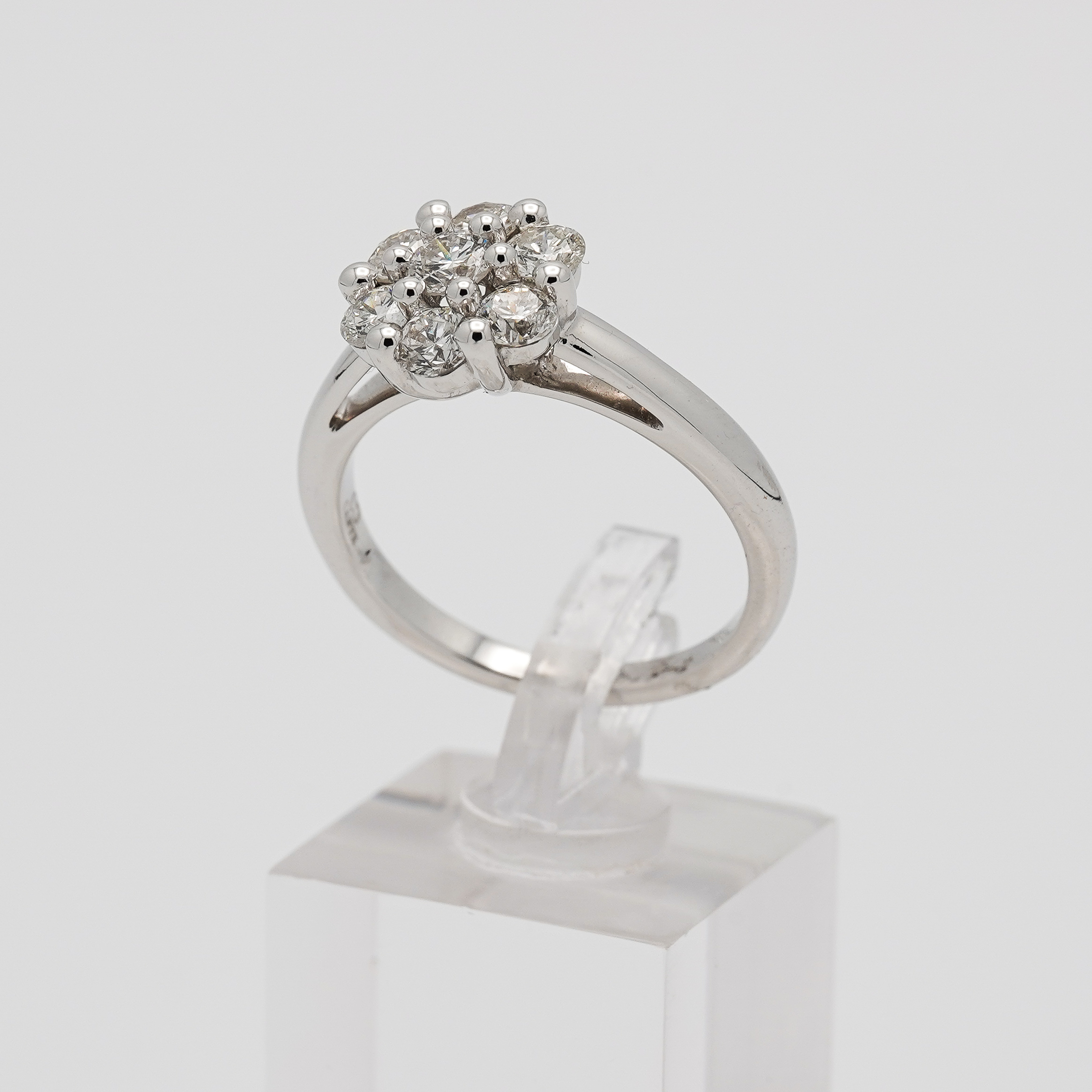 Bague or blanc 750 millièmes avec 7 diamants serti griffes et clous.