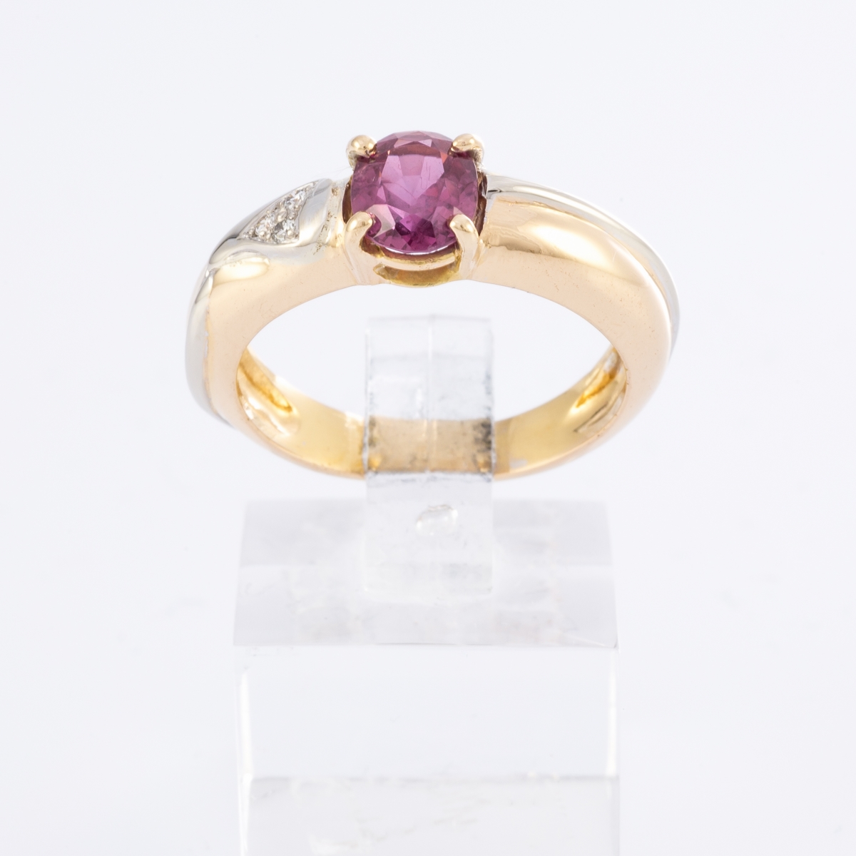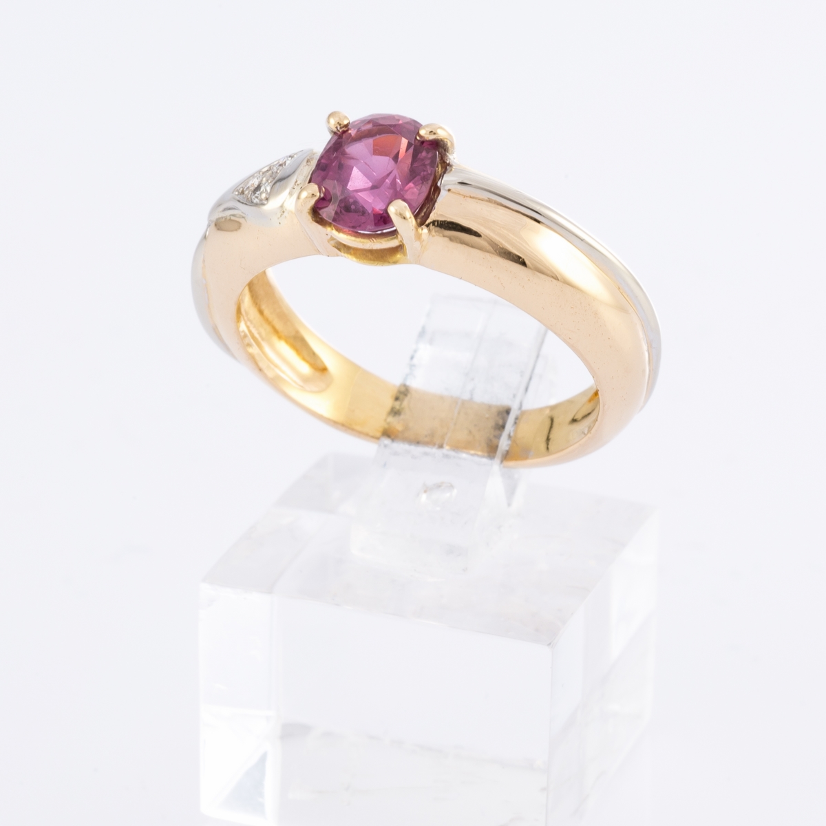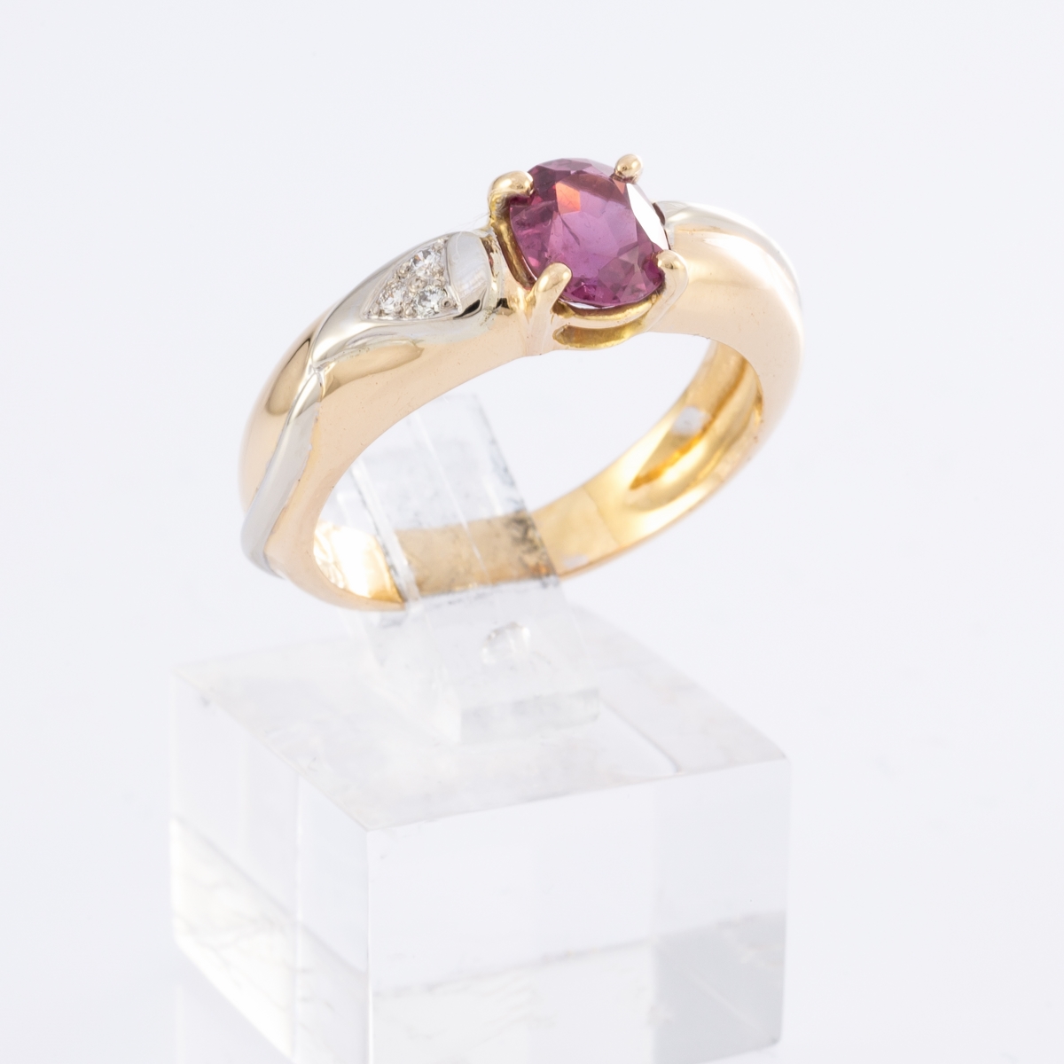 Bague or jaune et or blanc, rubis sertissage griffes, diamants sertissage grains.