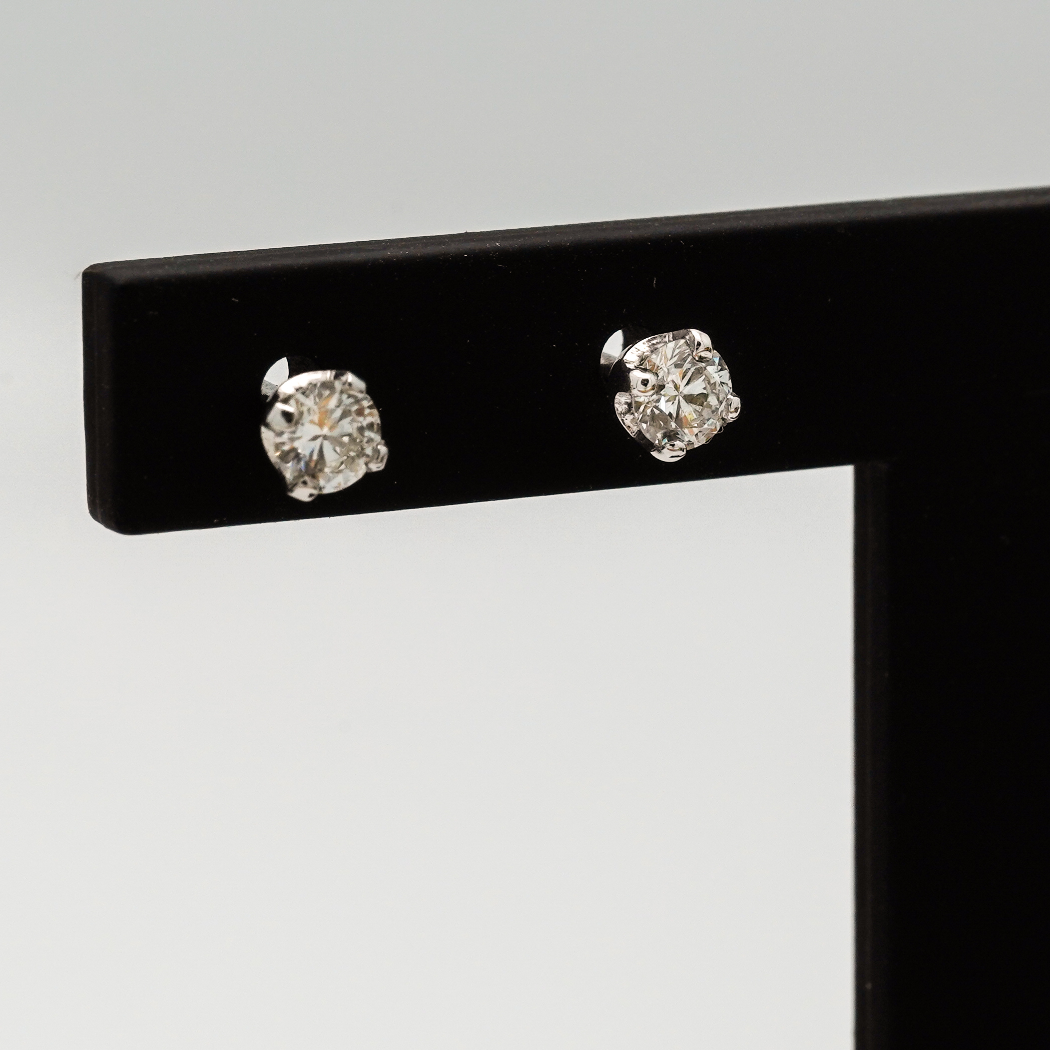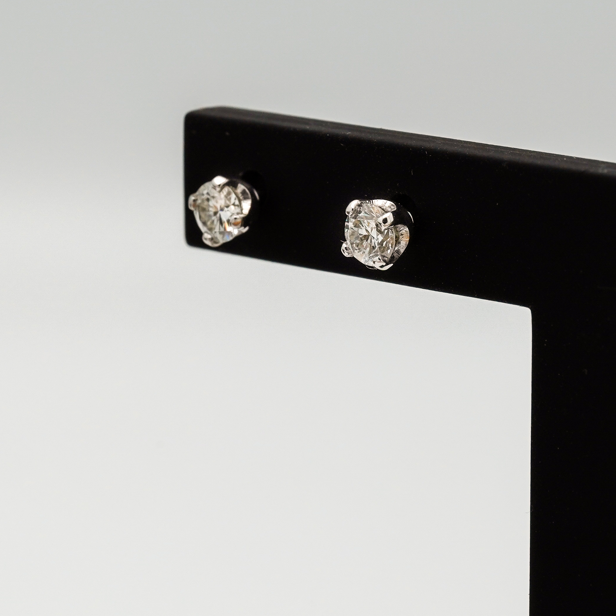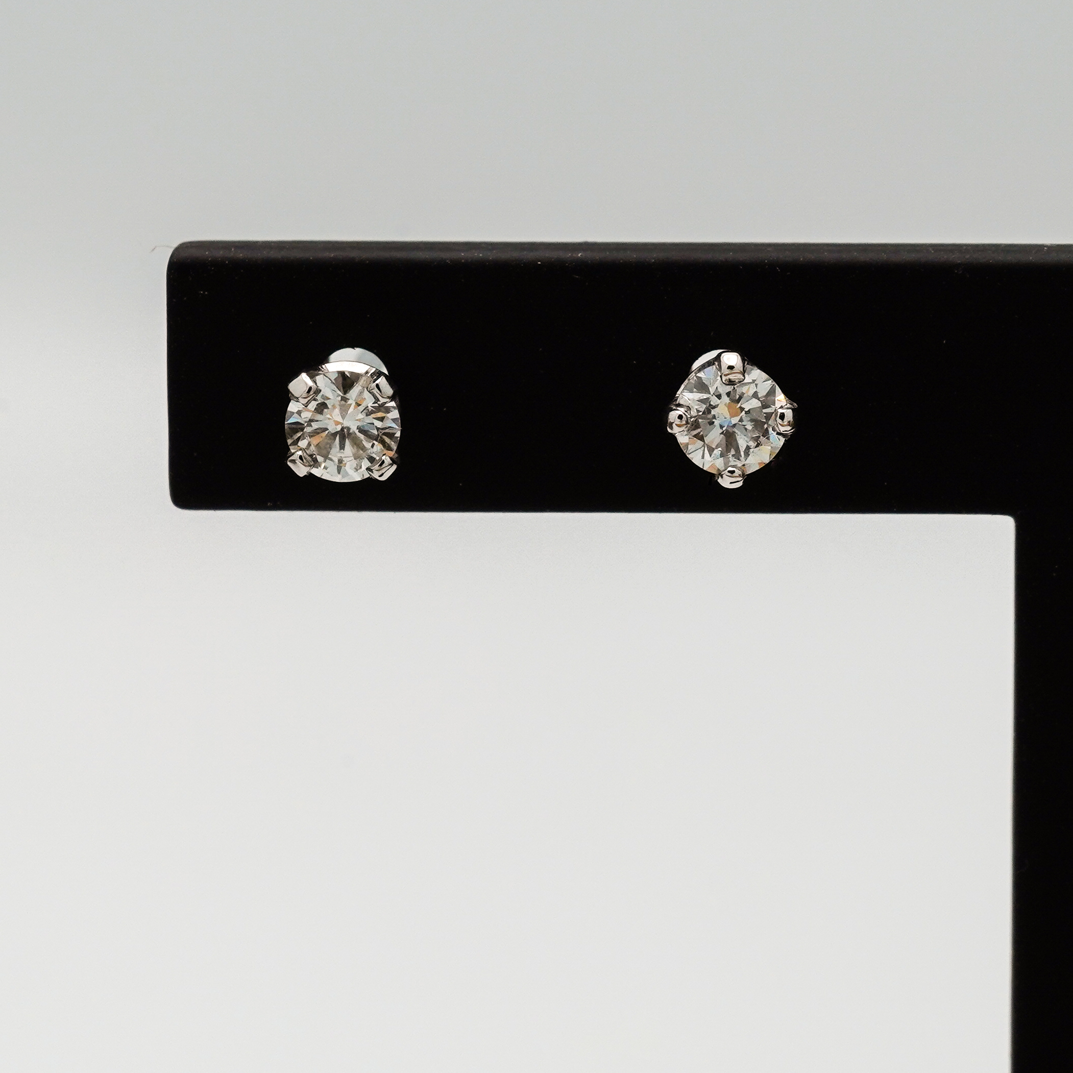 Boucles d’oreilles en or blanc montées sur tiges et poussettes avec un chaton 4 griffes pour un diamant de 3 mm de diamètre