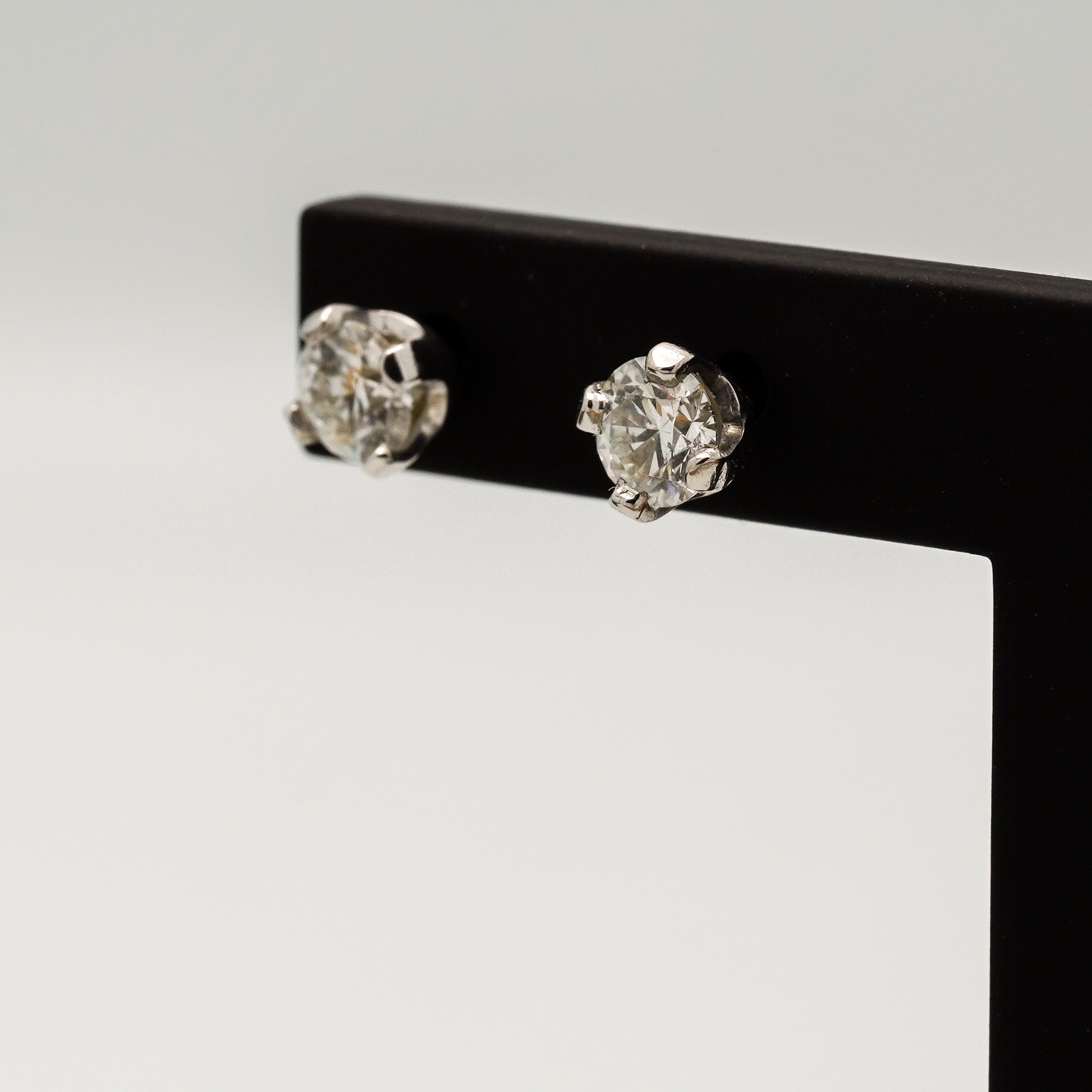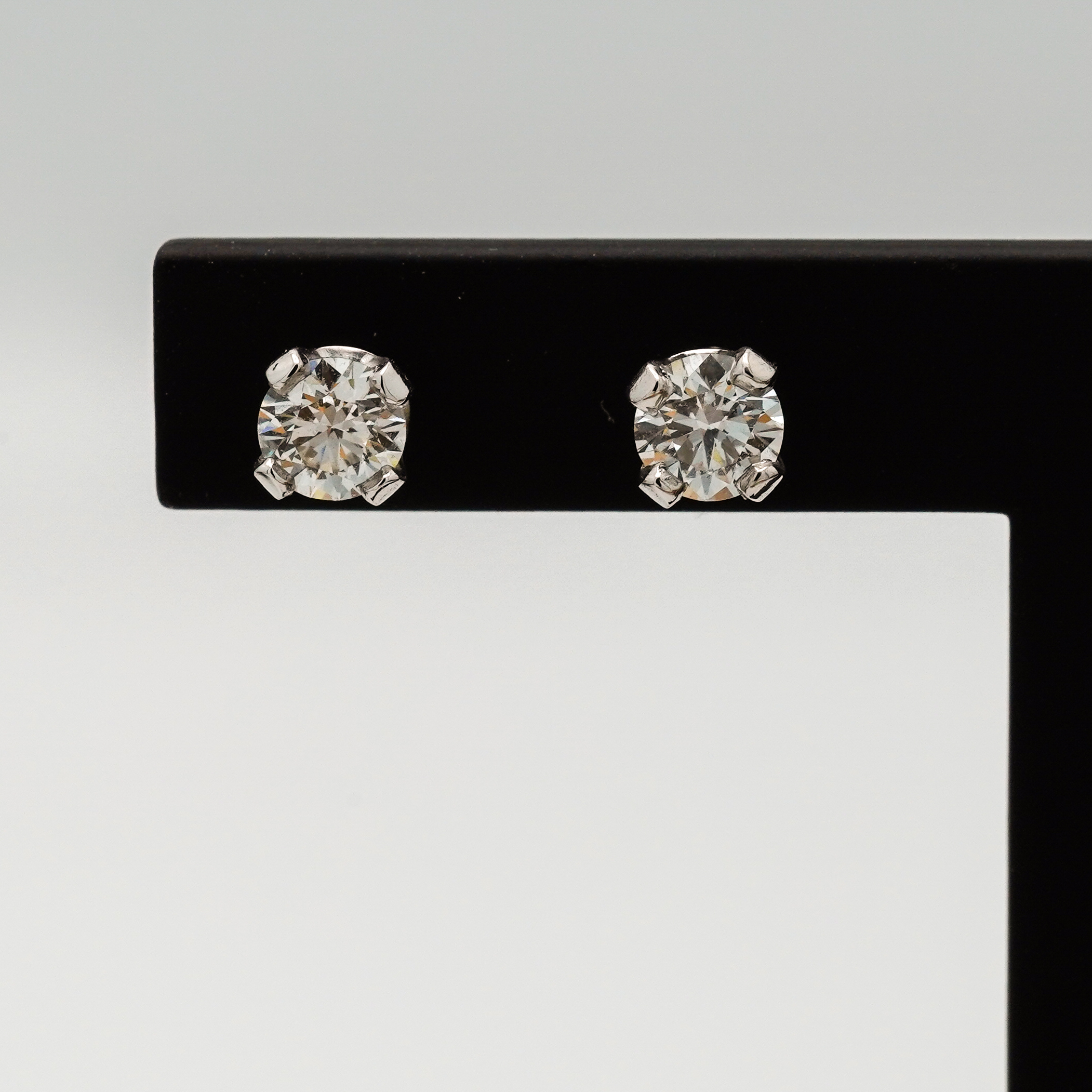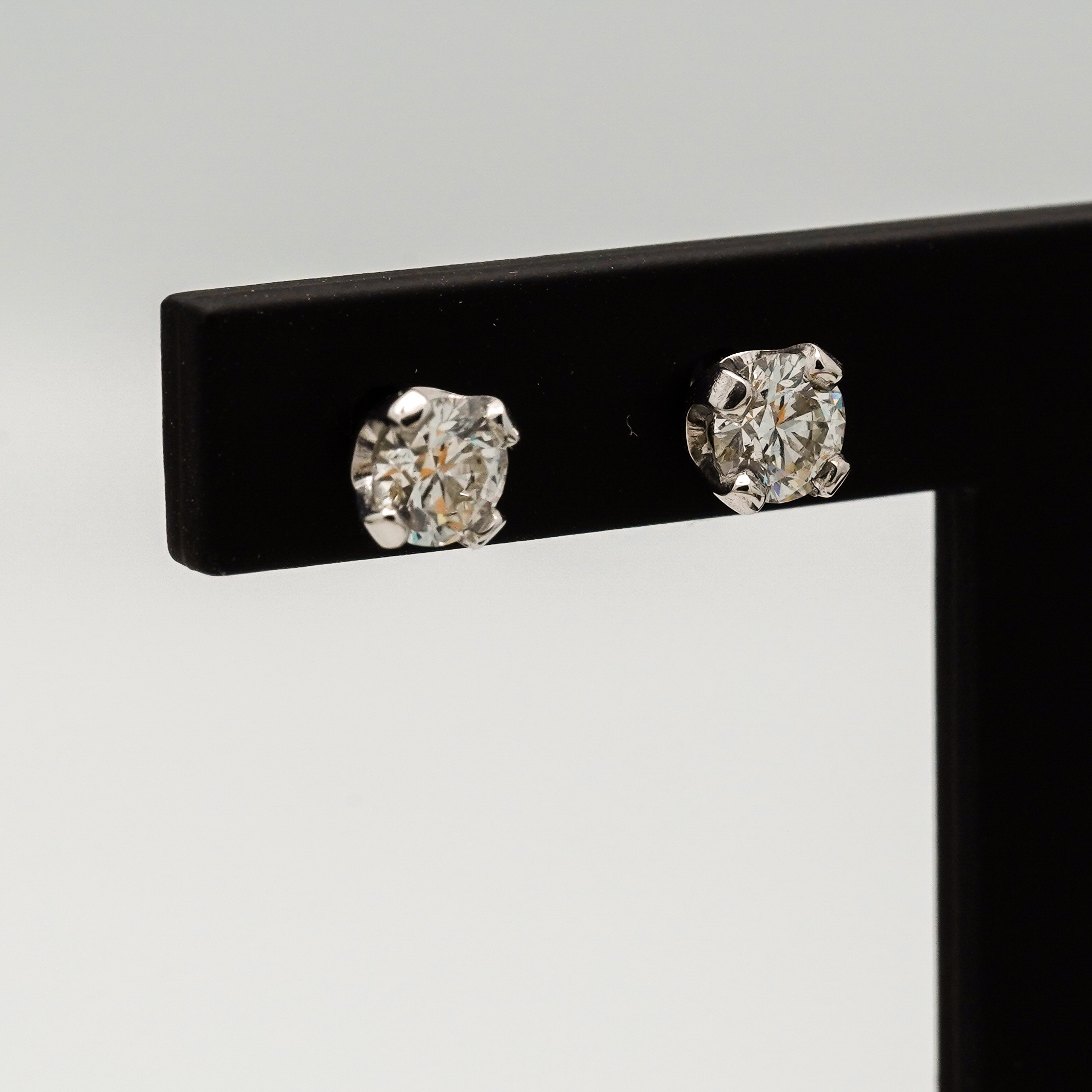 Boucles d’oreilles en or blanc montées sur tiges et poussettes avec un chaton 4 griffes pour un diamants de 3.9 mm de diamètre