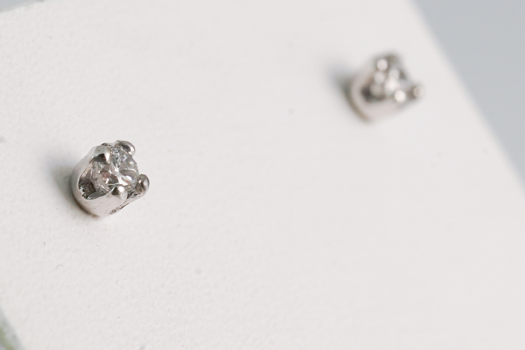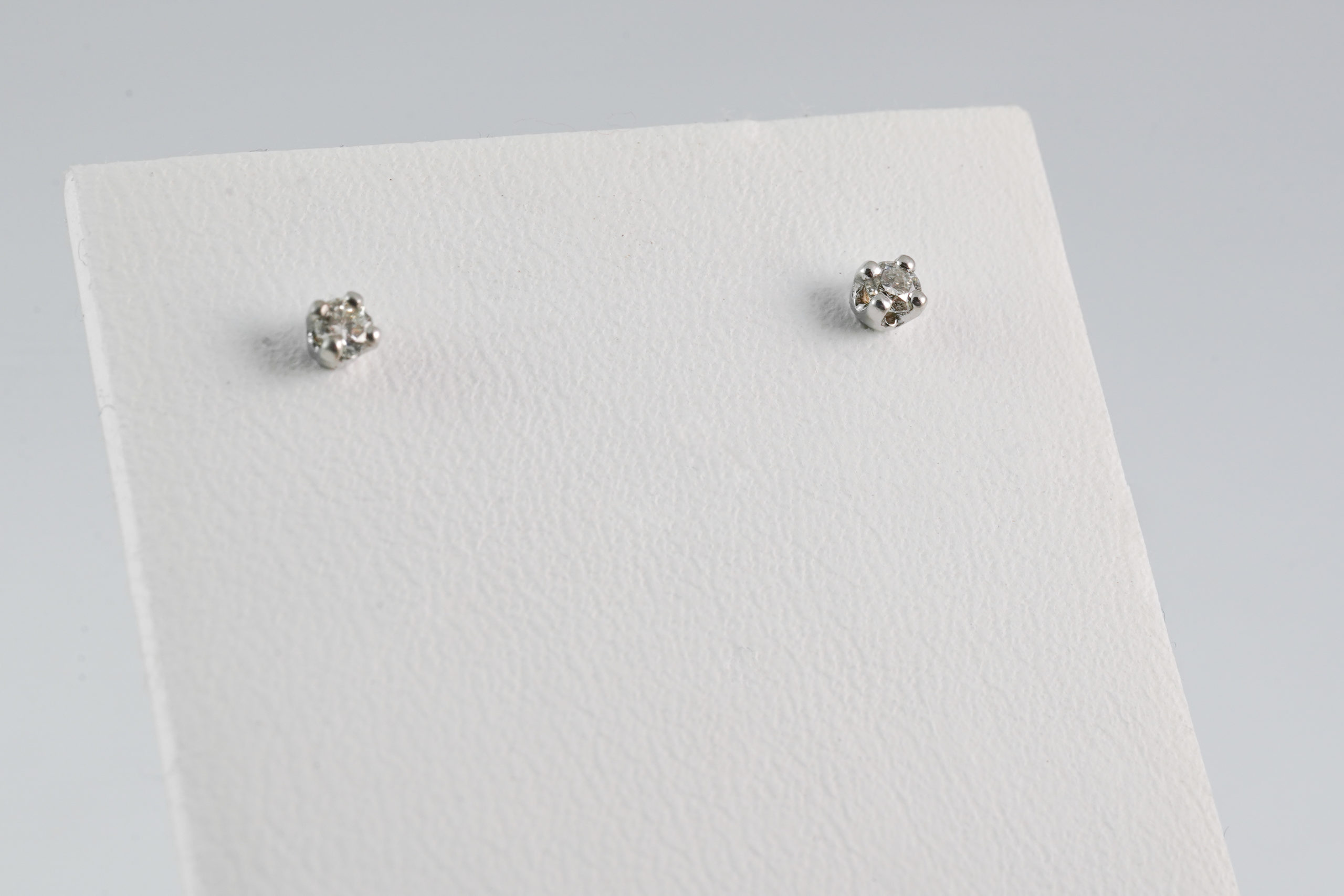 Boucles d’oreilles or blanc avec diamants serti 4 griffes, montées sur tiges et poussettes.