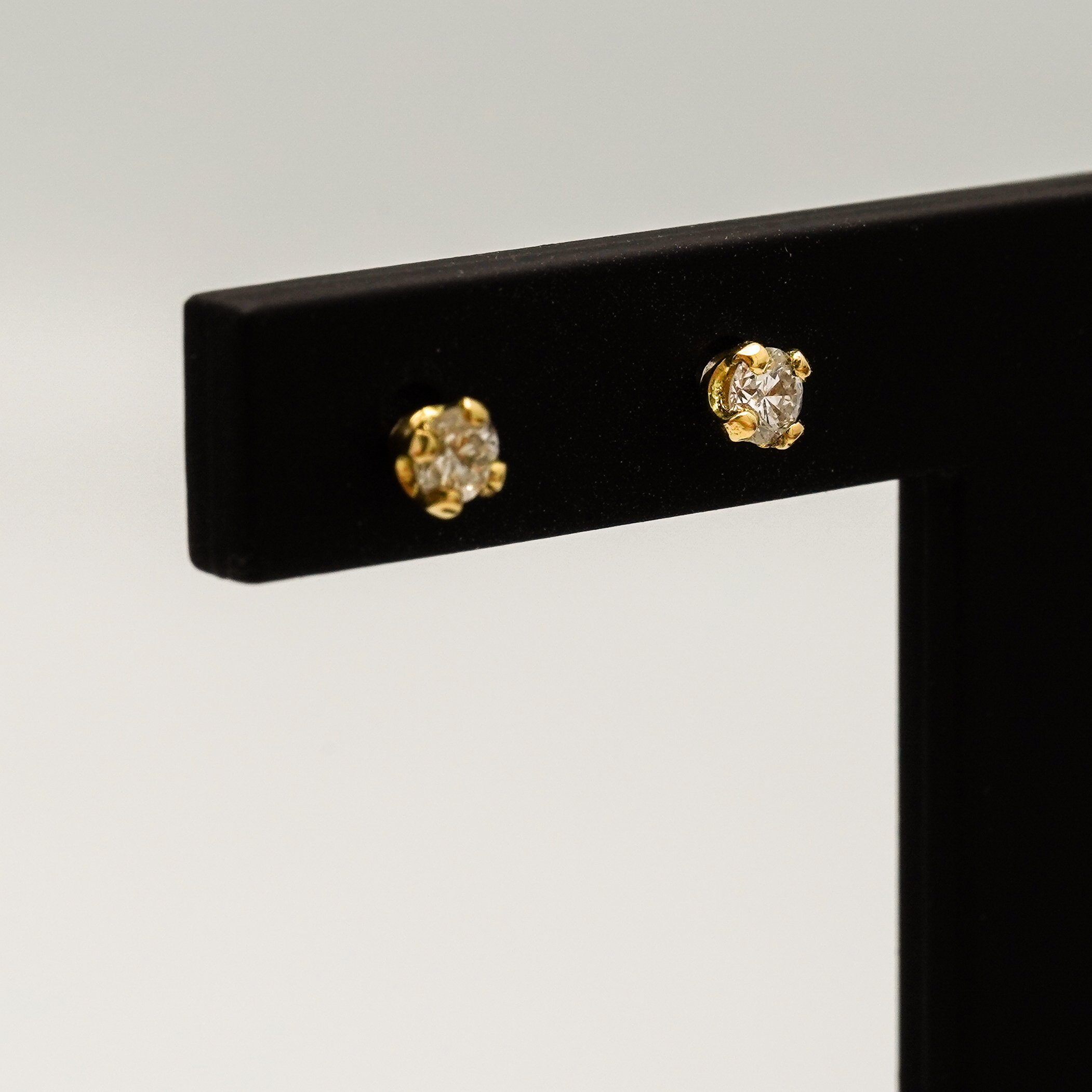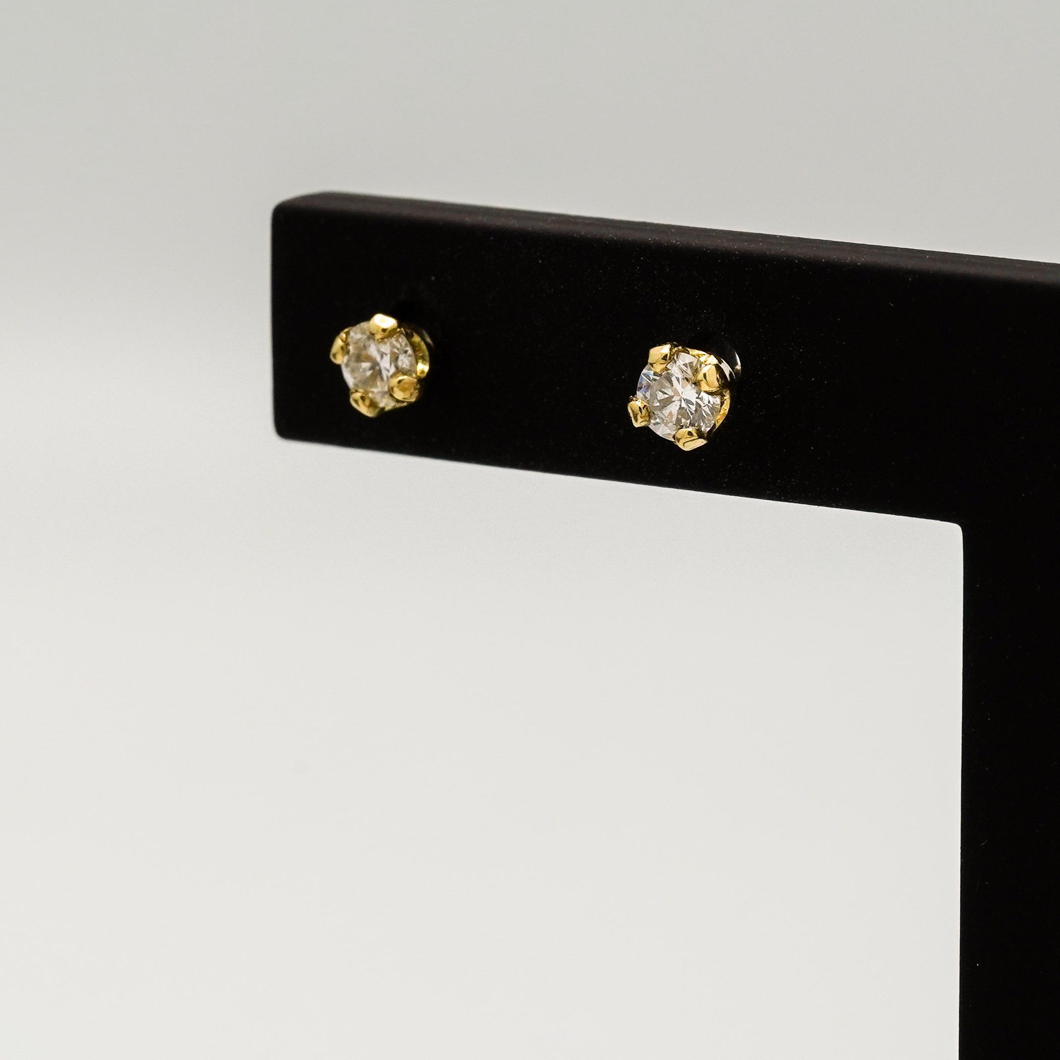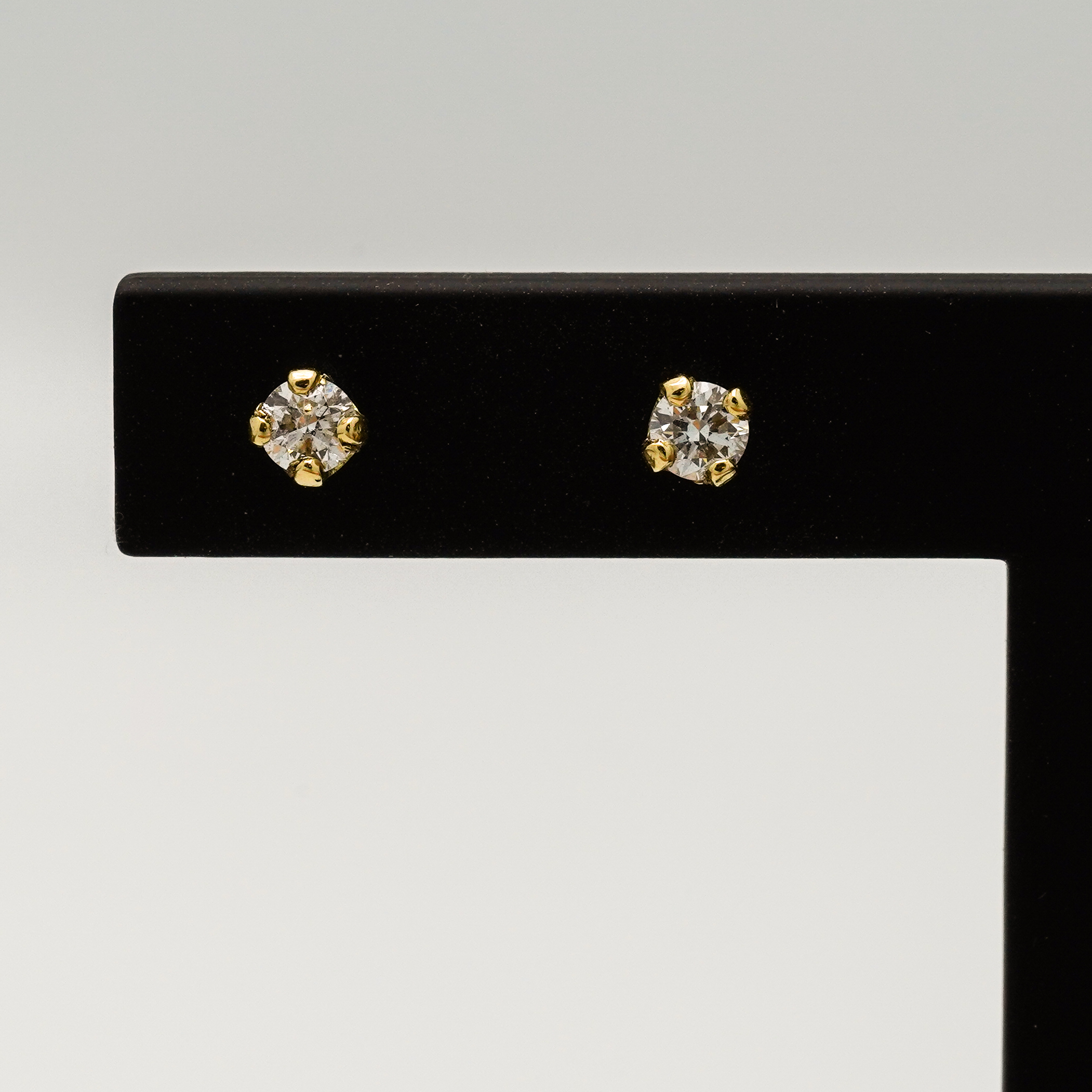Boucles d’oreilles en or jaune chaton 4 griffes sur tiges et poussettes avec deux diamants de 2.5 mm de diamètre