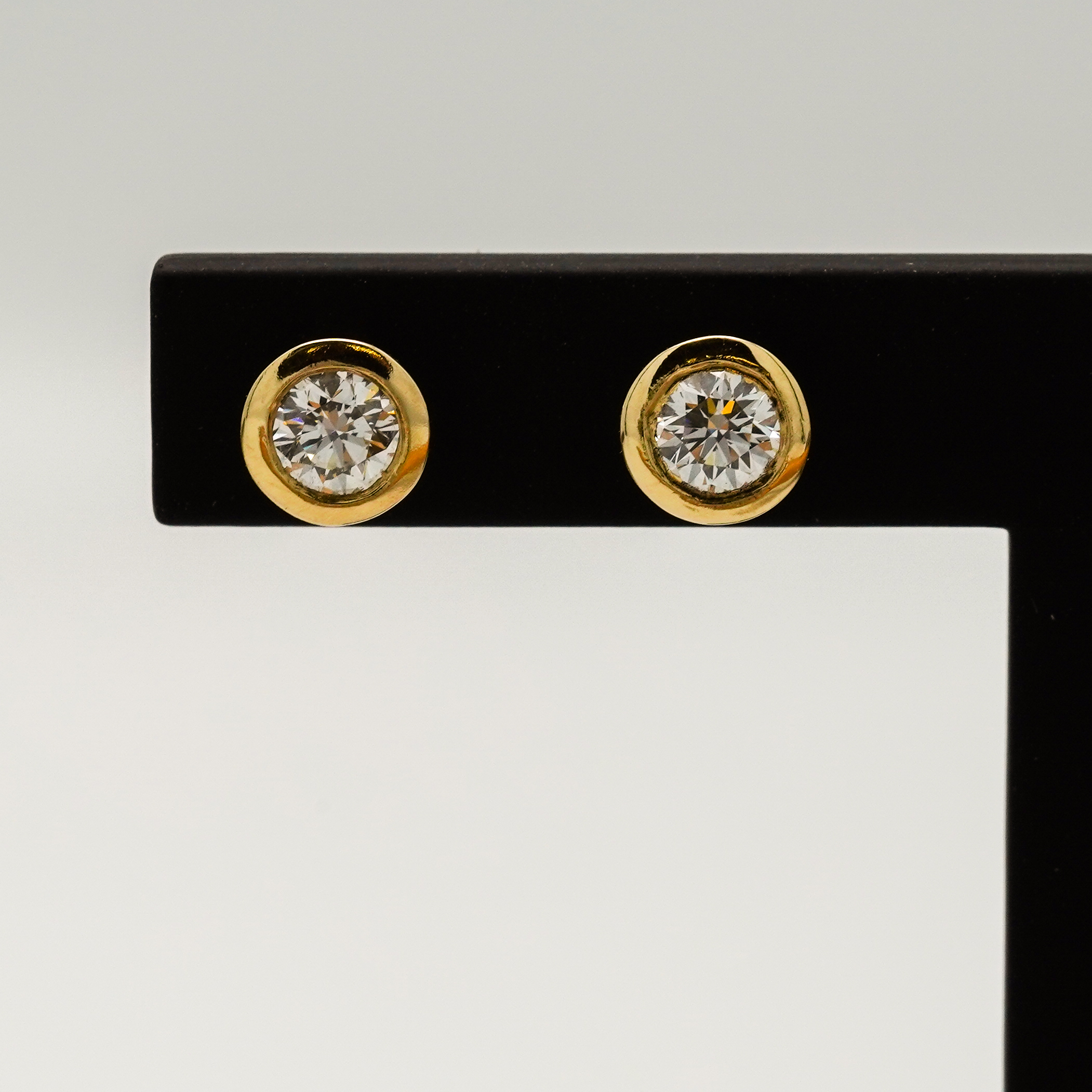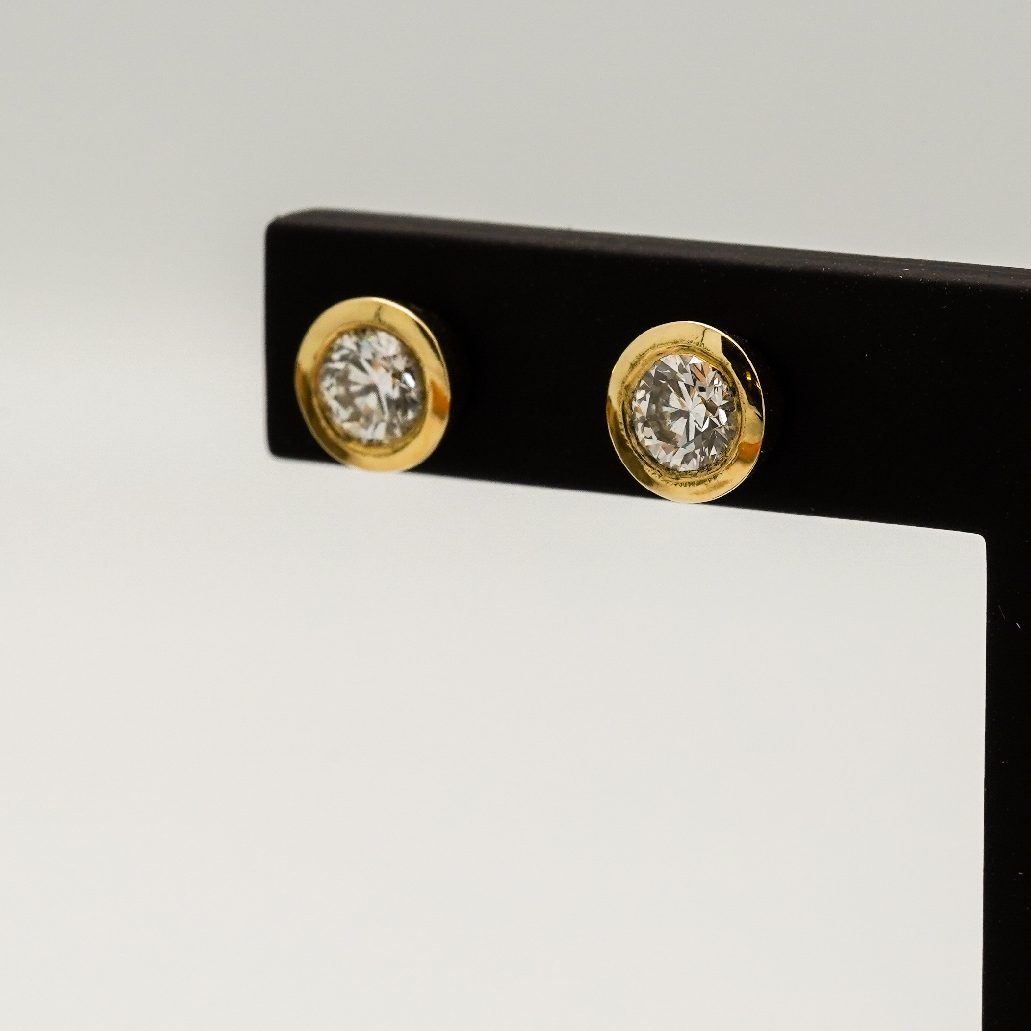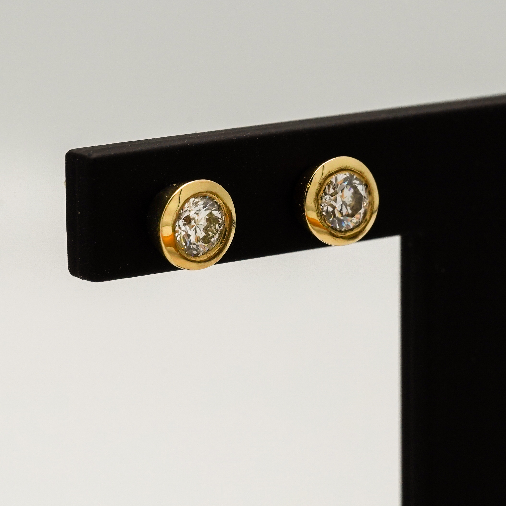 Boucles d’oreilles en or jaune serti clos avec diamants sur tiges et poussettes