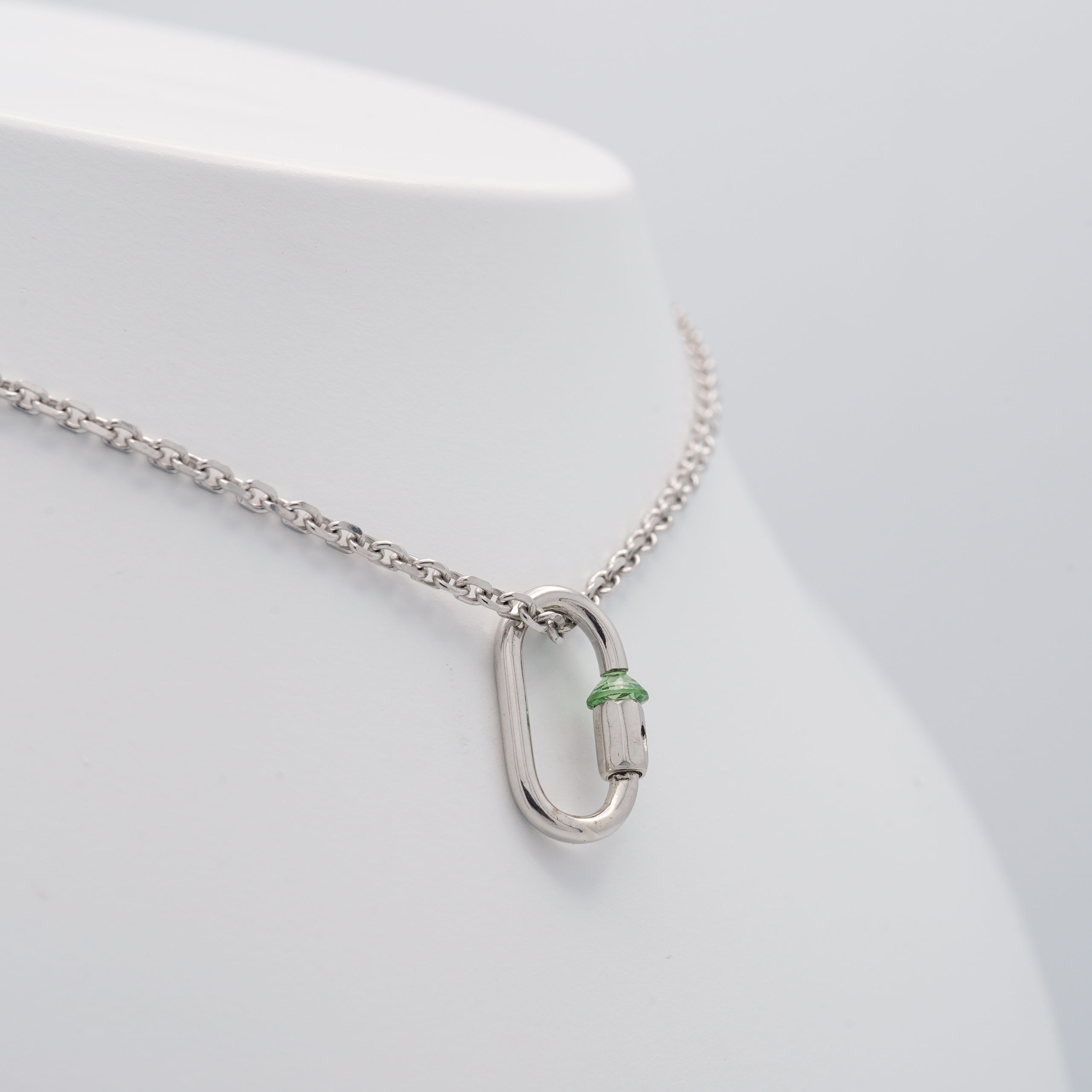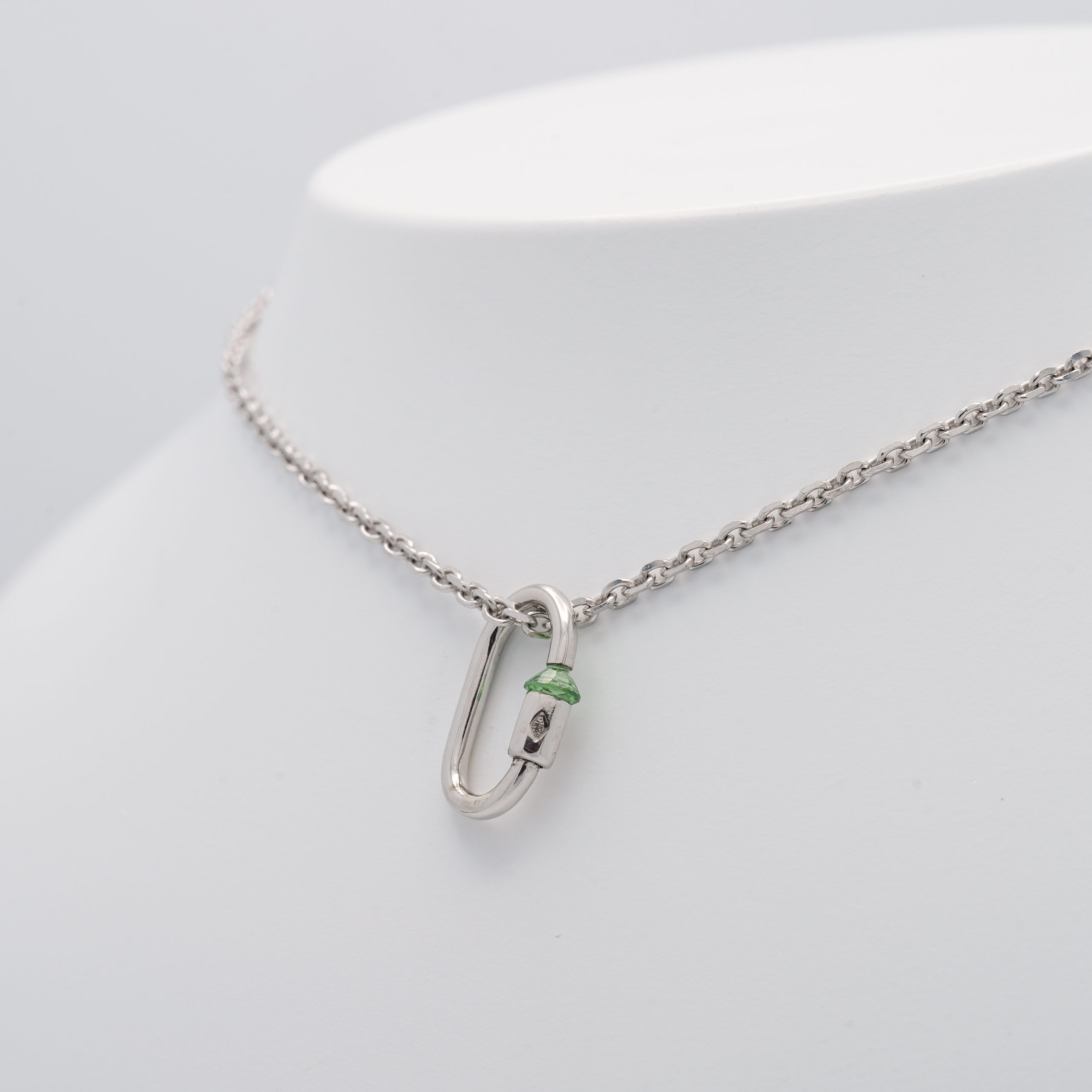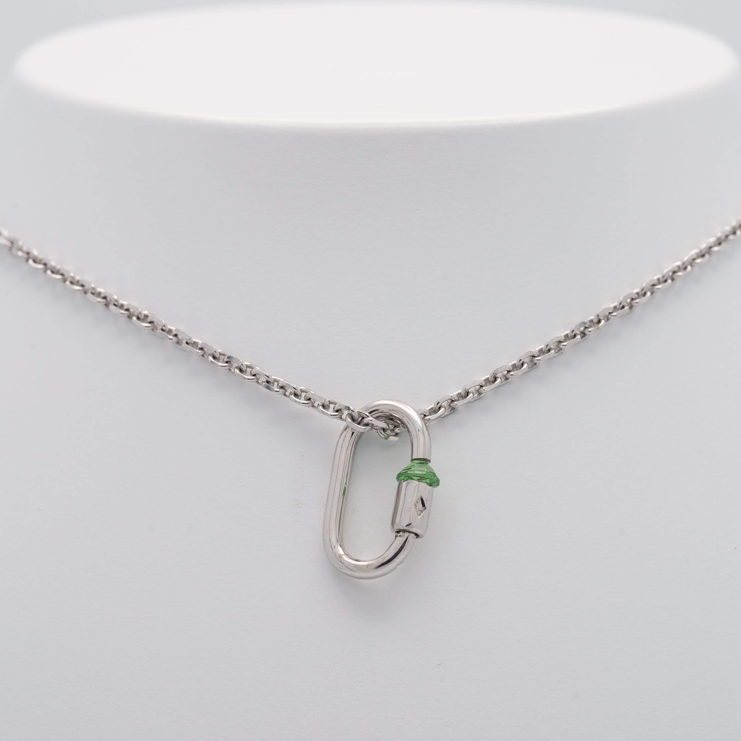 Pendentif en argent en forme de mousqueton avec un grenat de tzavorite serti dans la partie vissée