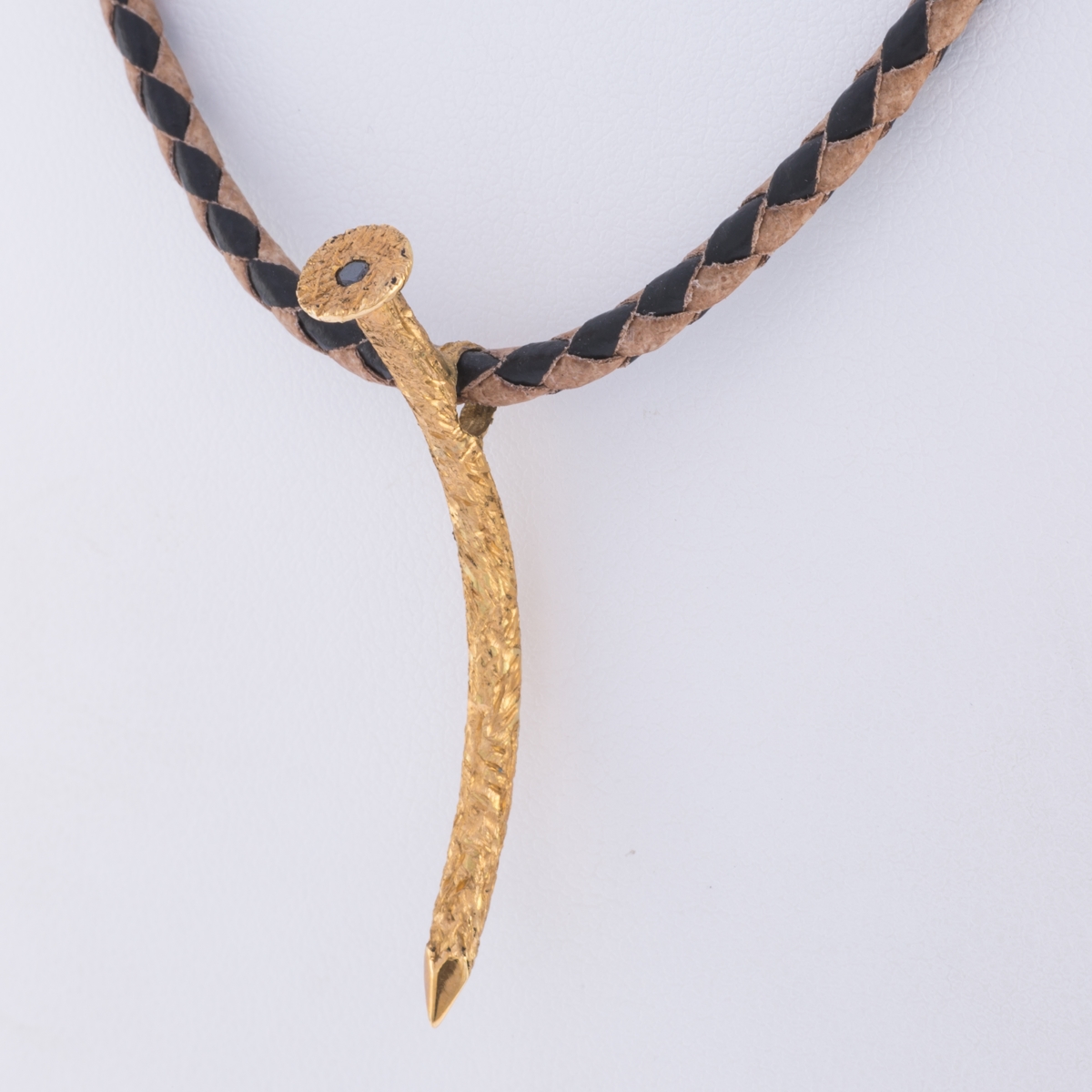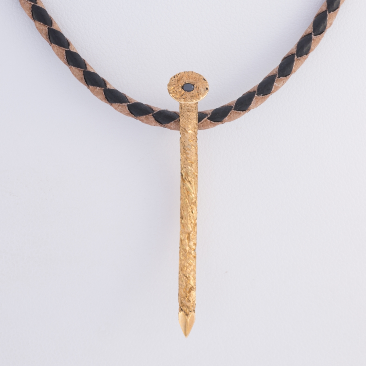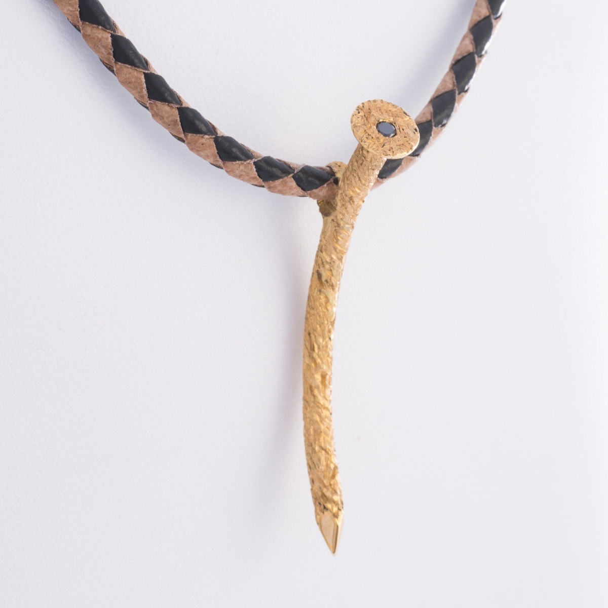 Pendentif or jaune 750 millièmes en forme de clou avec un diamant noir serti masse.